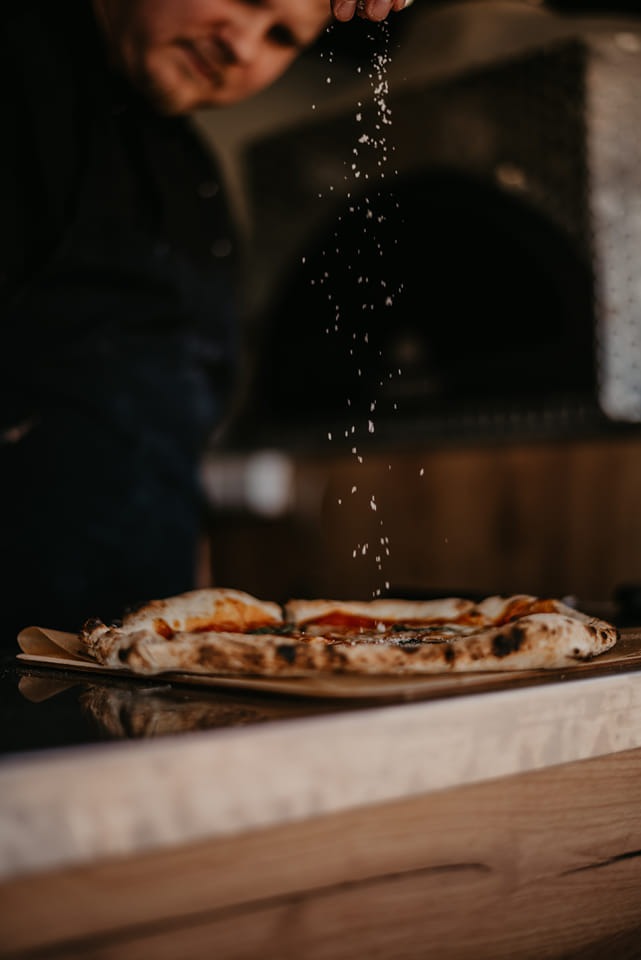 sos na bazie pomidorów San Marzano, mozarella fior di latte, szynka cotto, pieczarki, oliwki